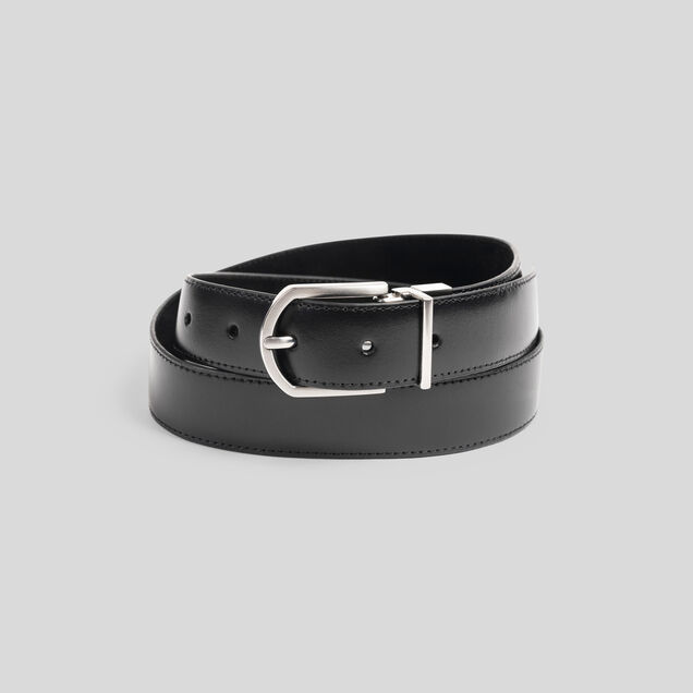 Idéal à porter avec un jean ou un chino, cette ceinture réversible en croûte de cuir donne une allure moderne à votre tenue. Elle comporte une boucle claire mate en métal. Cette ceinture pour homme originale est à associer avec vos tenues préférées. Largeur sangle : 29 mm.
