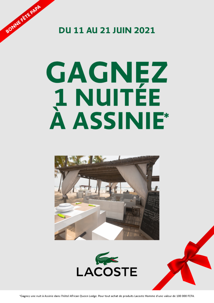 Du ���� au ���� �������� ��������, tentez de gagner une nuit à l’hôtel Queen Lodge pour tout achat de produit Lacoste Homme d’une valeur de ������.������ ��������.