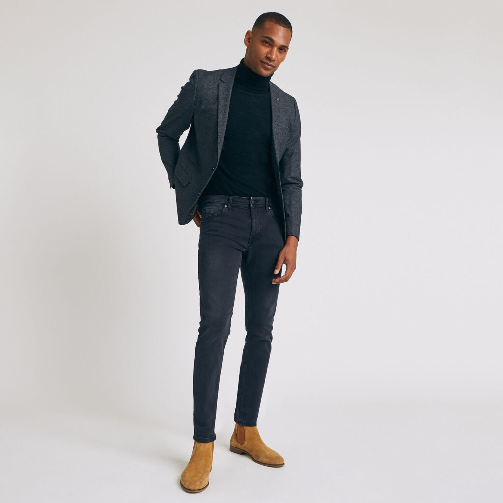 Ce jean slim gris foncé se patine au fil des jours et se plie à votre mode de vie ! Très confortable, sa toile vieillit joliment dans le temps, et sa coupe ajustée structure la silhouette.