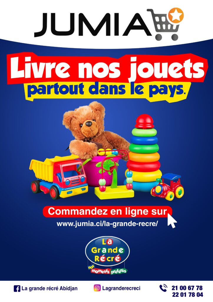 Commandez en ligne vos jouets préférés sur le site de JUMIA Côte d’Ivoire : https://www.jumia.ci/la-grande-recre/