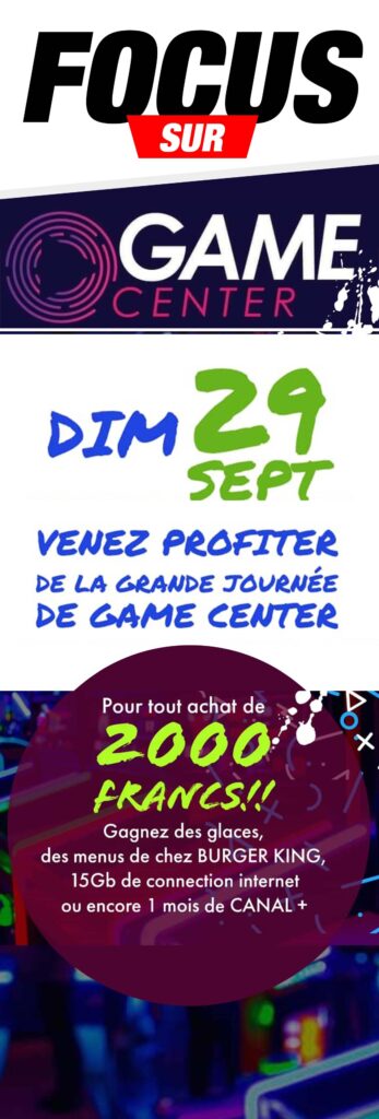 Pour tout achat d’un minimum de 2000FCFA chez Game Center, tentez de gagner des glaces et menus de chez @burgerking.ci , 15Go de connexion internet ou encore 1 mois d’abonnement @canalplusafrique
