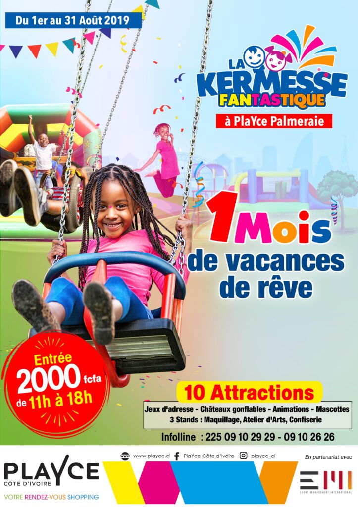 Vivez 1 mois coloré du 01 au 31 Août à PlaYce Palmeraie avec La Kermesse Fantastique. 1 mois de vacances de rêve avec 10 attractions. Pendant tout ce mois d’août, chez PlaYce Palmeraie,pour le bonheur de vos enfants de 3 à 15 ans à PlaYce Palmeraie.