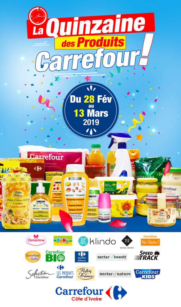Dans la rubrique alimentations, découvrez le Nectar Exotique – le jus multifruits – le pur jus d’orange – les chips nature – les chips à l’ancienne – le vinaigre de cidre – l’huile de tournesol Carrefour et l’huile de tournesol Carrefour prix blanc.