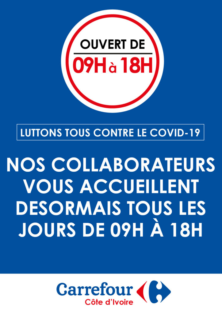 Les magasins Carrefour chez PlaYce Marcory et PlaYce Palmeraie restent ouverts avec un service toujours impeccable. Leurs collaborateurs vous accueillent désormais de 9h à 18h jusqu’à nouvel ordre.