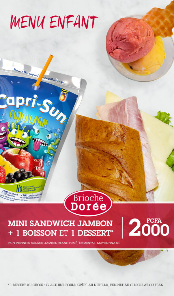 Mini sandwich Jambon + boisson + dessert à 2000FCFA