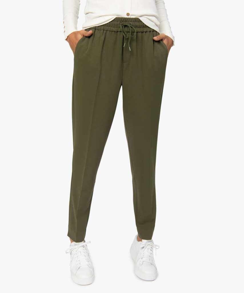 Un pantalon en toile idéal pour allier le confort à l’élégance. Confectionné dans une matière extensible au tomber impeccable, ce pantalon ample vous facilite la vie. Avec sa large ceinture élastiquée effet froncé ajustable par cordon à nouer, il souligne la taille avec beaucoup d’élégance. Un pantalon femme à insérer dans sa garde-robe et à accorder aussi bien à un tee-shirt qu’à une blouse fleurie. Il possède des poches italiennes, deux fausses poches passepoilées au dos et de fentes en bas de jambes.