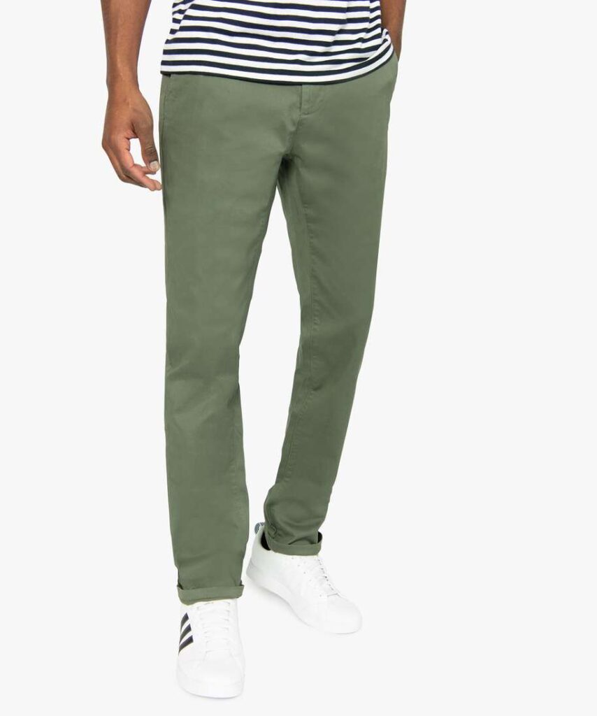 L’élégance en toute simplicité : voilà ce qu’on aime avec ce pantalon chino uni, à la coupe slim. À porter sans modération ! Avec une chemise ou un polo, avec des derbies ou des tennis, il vous assure une silhouette élégante en toutes circonstances. Décliné dans de nombreux coloris, ce pantalon homme est un basique à collectionner ! Ce chino homme slim possède 2 poches italiennes, 1 poche ticket et 2 poches passepoilées avec bouton sur l’arrière.