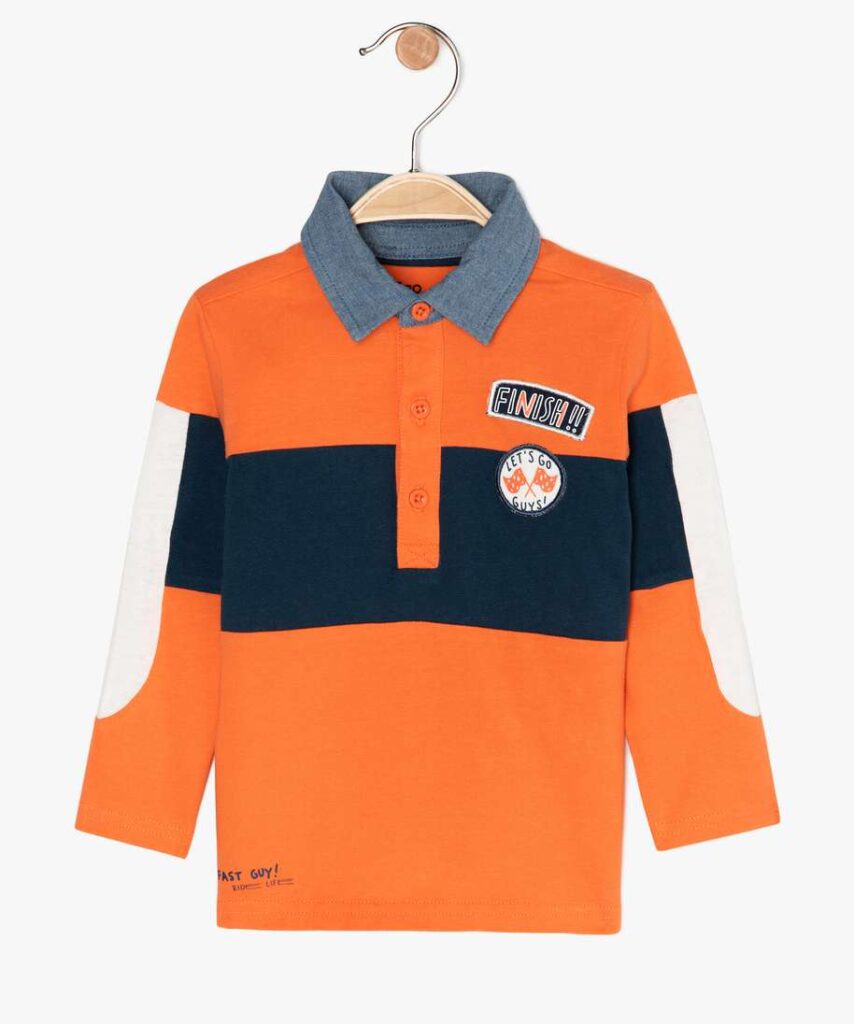 Pour une allure sportswear et gaie à la fois, on opte sans hésiter pour ce polo bébé garçon ! Un polo à manches longues qui trouvera sa place en toutes saisons dans le vestiaire de votre bambin. On aime l’allure chic de son col en chambray qui contraste avec les jeux de couleurs franches. Sur la poitrine, deux patchs apportent un joli relief au polo. Un tee-shirt multicolore à porter avec un jean comme avec un jogger ou un chino.