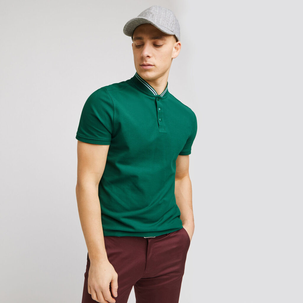 Ce polo homme à manches courtes en maille coton piquée affiche un col teddy et un col pressionné pour un style rétro plus que jamais d’actualité.