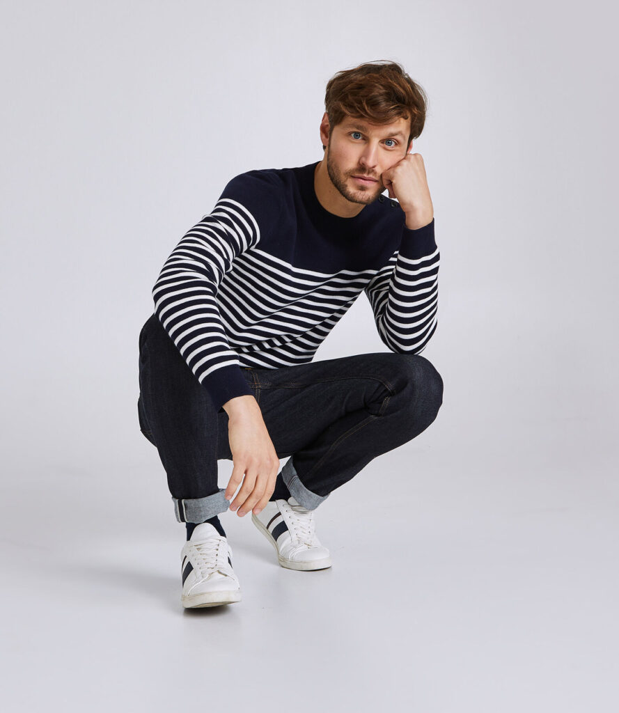 Pull homme rayé marinière – Bleu Marine
