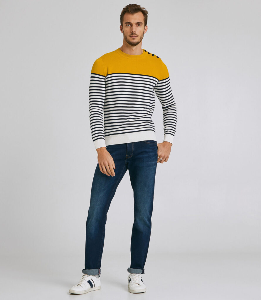 Pull homme rayé marinière – Jaune