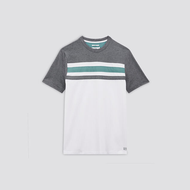 Ce tee-shirt à manches courtes colorblock en coton piqué possède un col rond et une coupe regular, pour un porté cool.