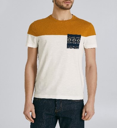 Doux et agréable à porter, ce tee-shirt homme affiche un contraste de couleurs avec une poche aux motifs aztèques hyper tendance.