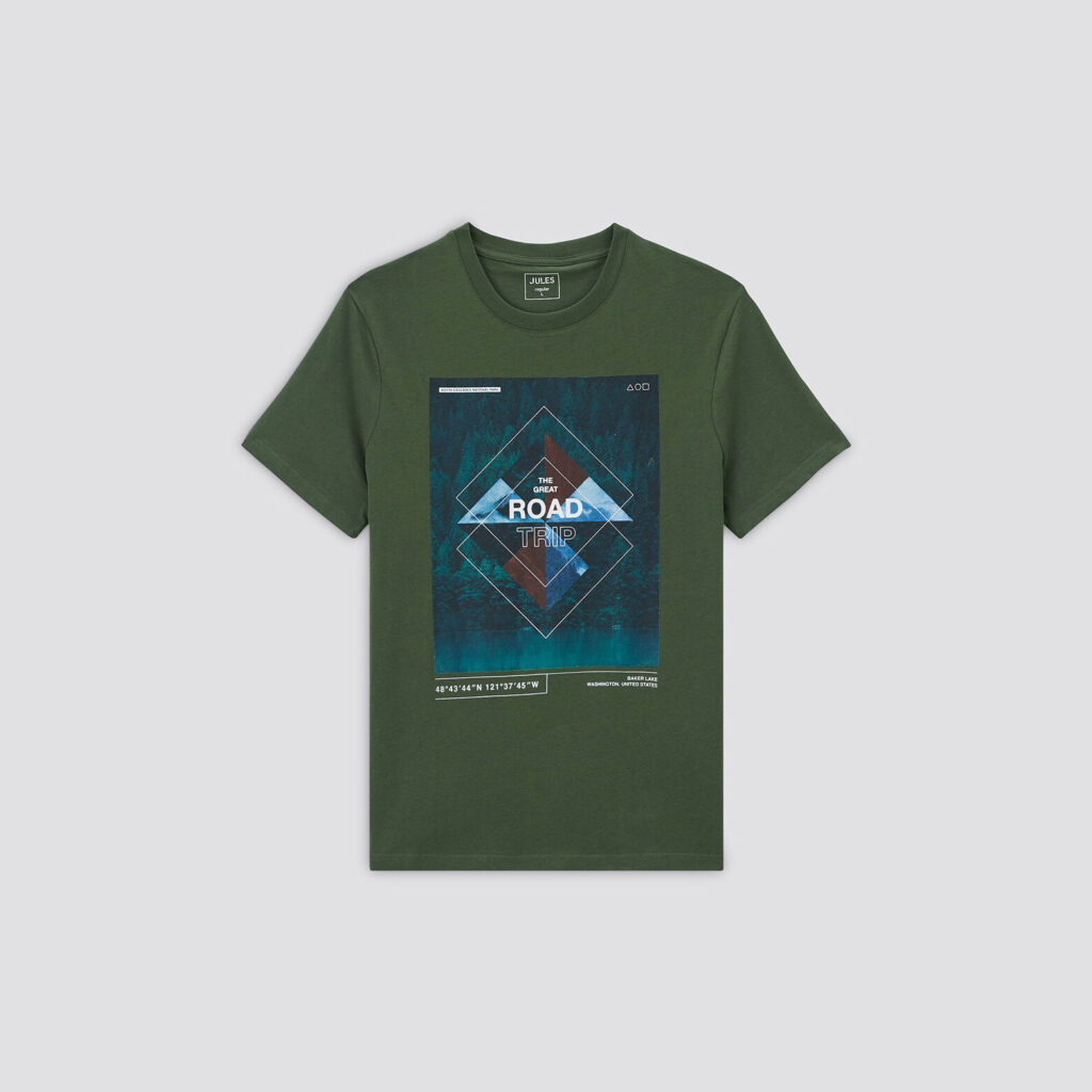 Indispensable au quotidien, le tee-shirt homme à col rond joue la carte graphique un motif en photoprint sur la poitrine sur une maille en jersey souple et doux.